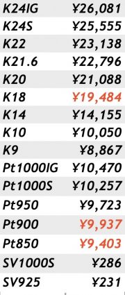 金・プラチナ買取価格ほぼ毎日更新しています |