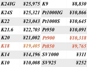 本日の貴金属買取価格です❗️ご検討下さい 一般向け本日の貴金属買取価格