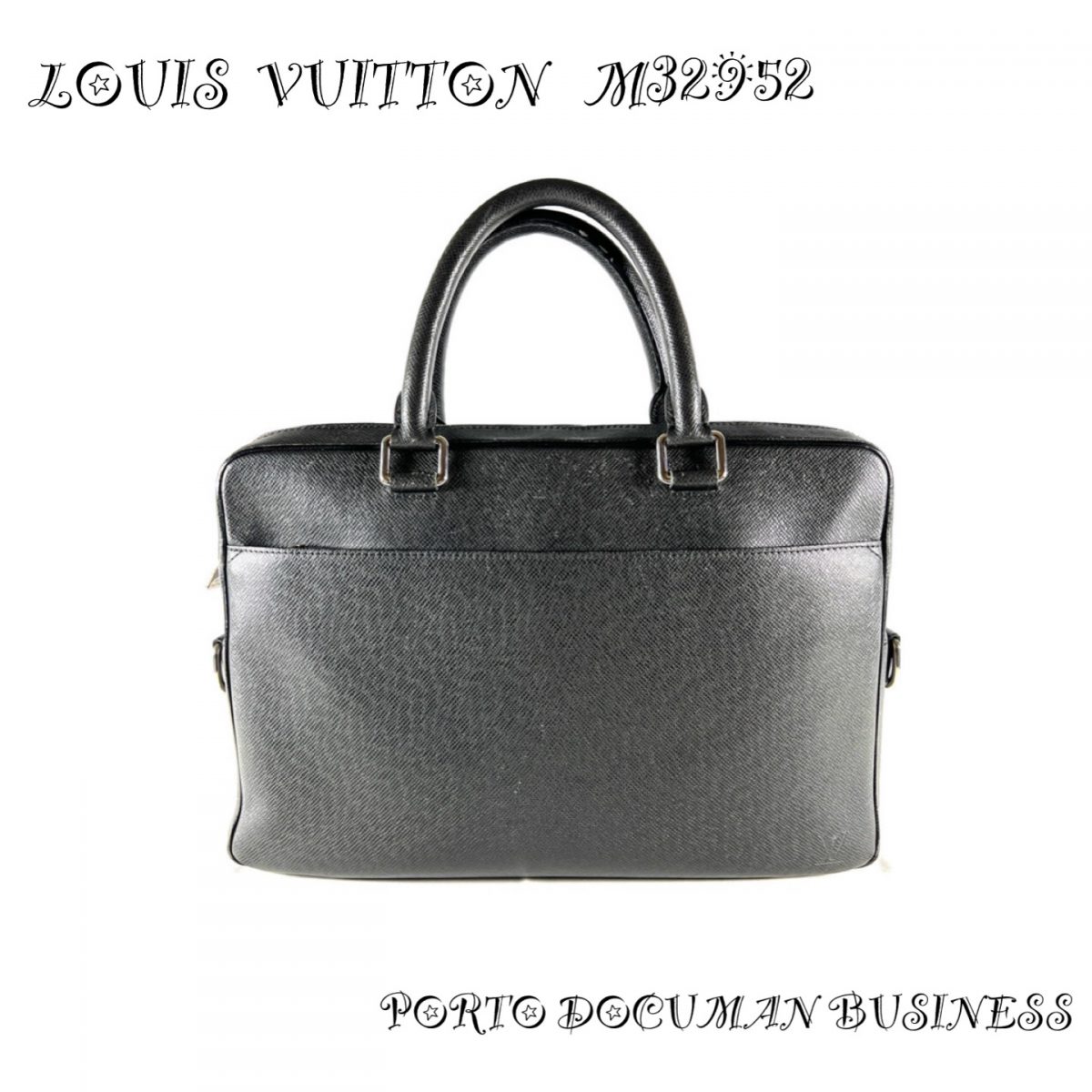 LOUIS VUITTONの「ポルトドキュマンビジネス M32952」。タイガラインならではの高級感漂う洗練されたデザインと機能性が魅力のビジネスバッグです。カラーは落ち着きのある「アルドワーズ(ブラック系)」で、ビジネスシーンに最適なシックな印象を与えます。ショルダーストラップは付属しておりませんが、手持ちでスマートに持ち歩けるデザインとなっています。