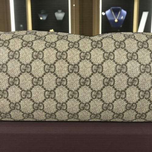 キャンバス地にグッチを象徴するGGパターンをあしらい、落ち着いた色合いと洗練された雰囲気を兼ね備えた一品。持つだけで上品な印象を与え、シンプルなコーディネートにも高級感をプラスしてくれます。