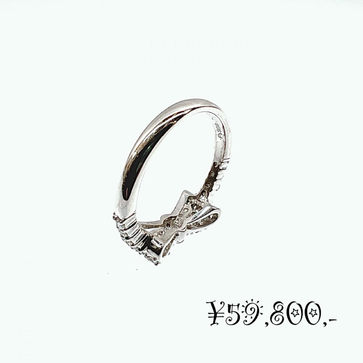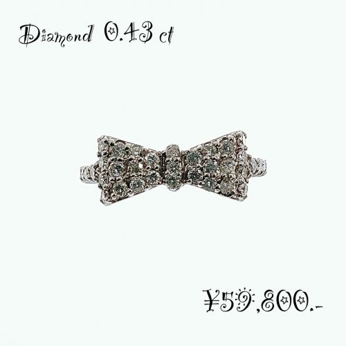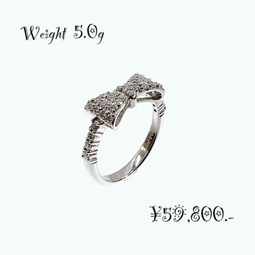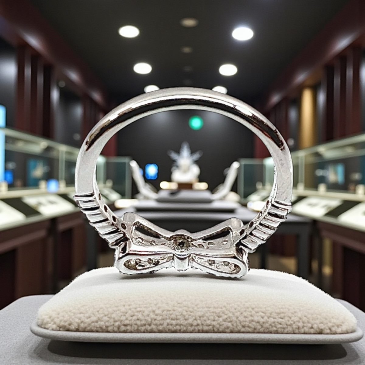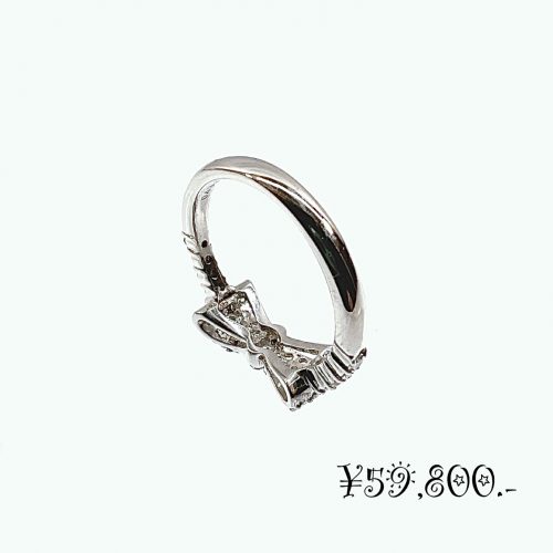 上品な輝きと愛らしさを兼ね備えた、Pt900天然ダイヤモンド リボンモチーフリングです。