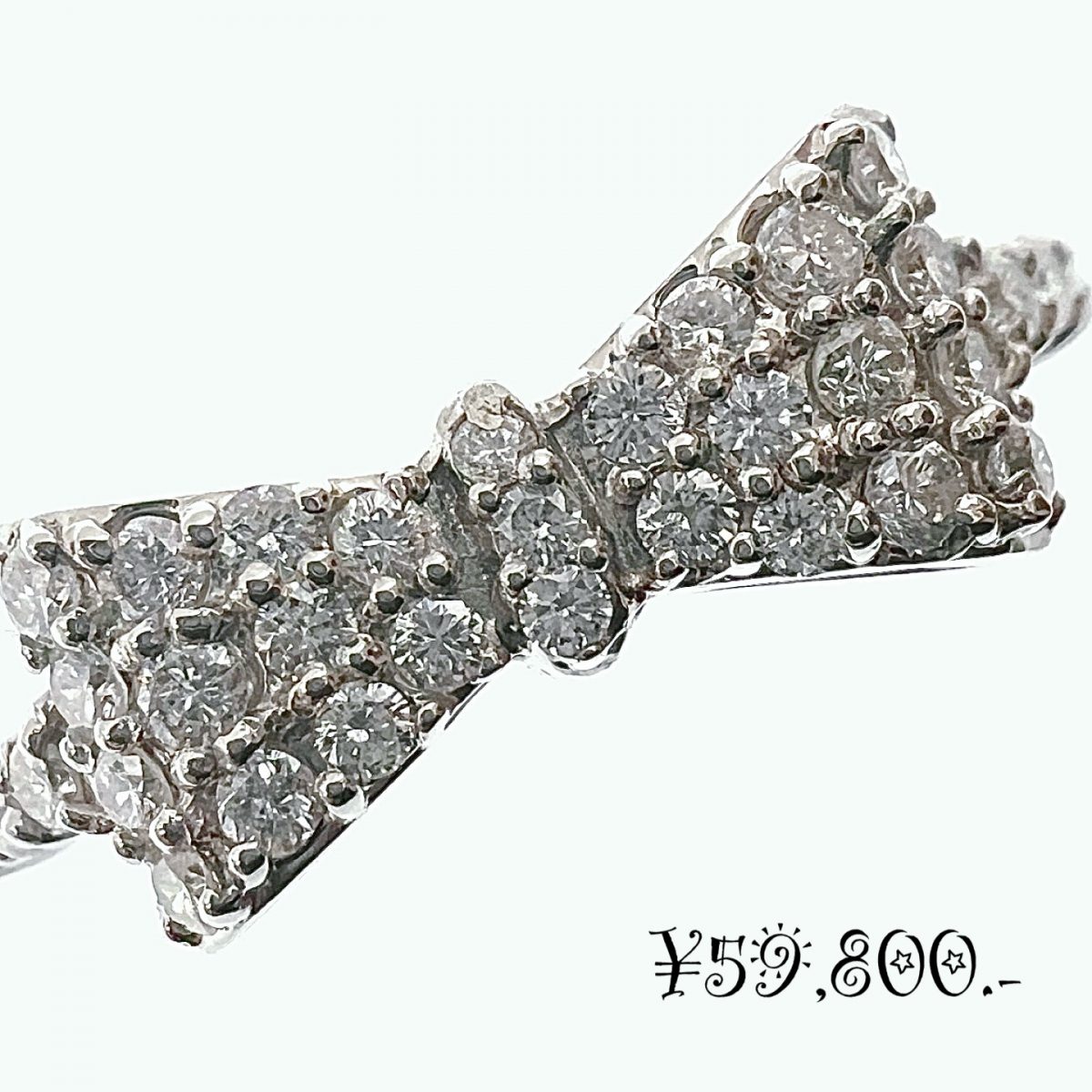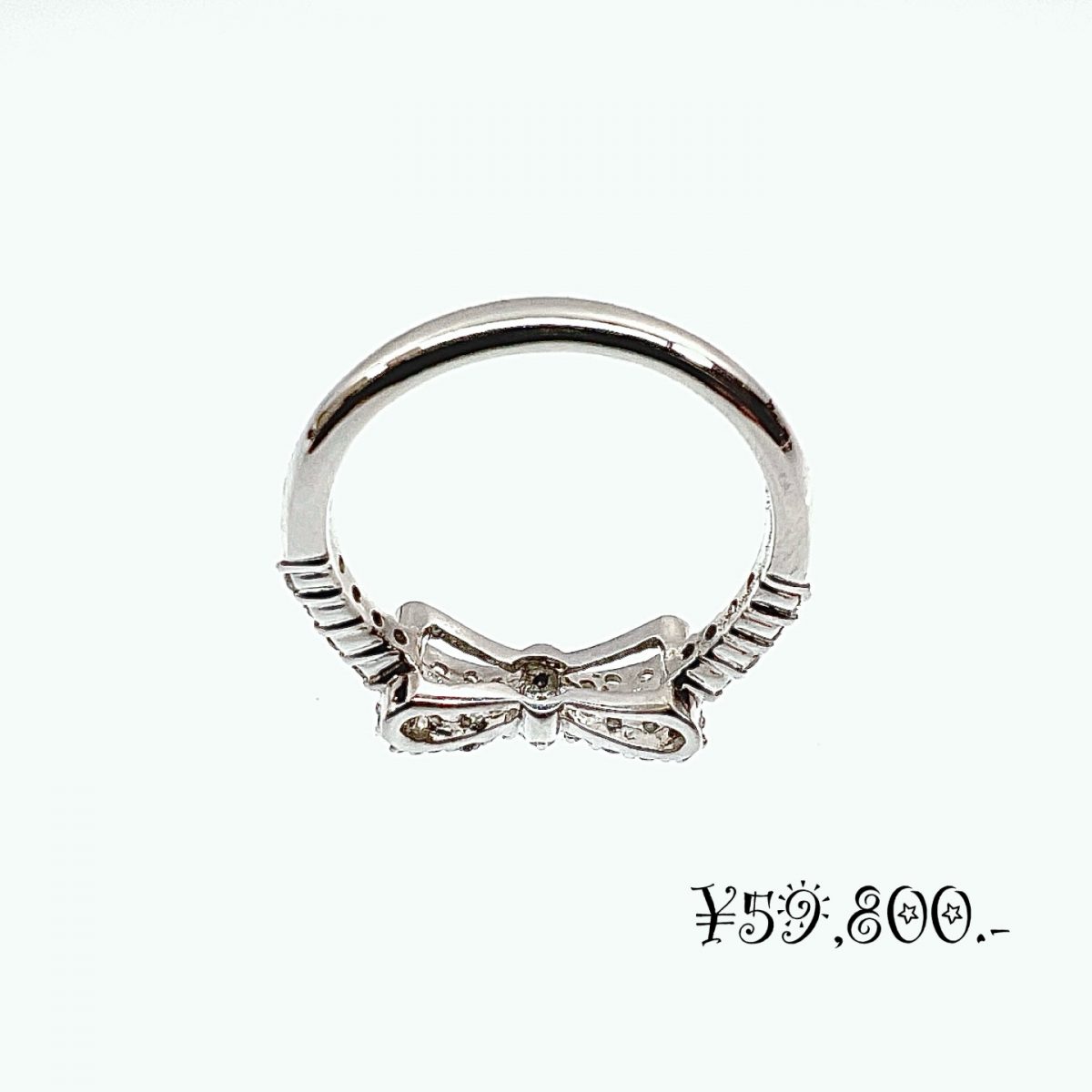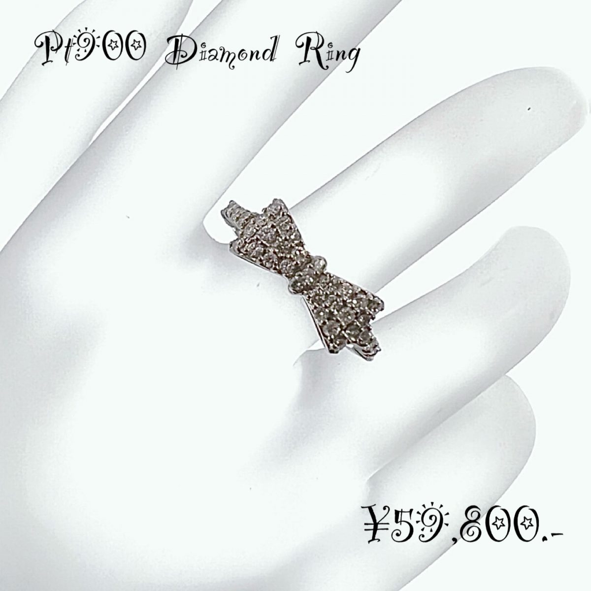 上品な輝きと愛らしさを兼ね備えた、Pt900天然ダイヤモンド リボンモチーフリングです。