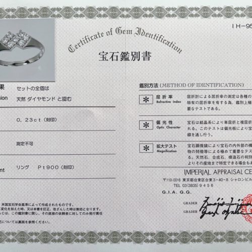 【付属品】鑑別書(IMPERIAL APPRAISAL CENTER 発行)
