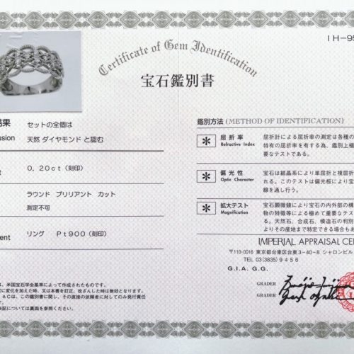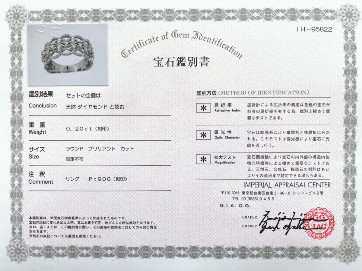 付属品:鑑別書(IMPERIAL APPRAISAL CENTER発行)