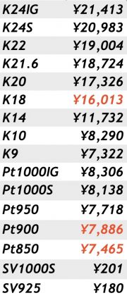 金・プラチナ・シルバー